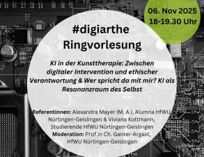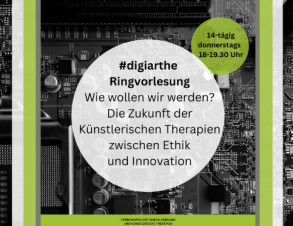 Die Arbeitsgruppe #digiarthe veranstaltet ihre zweite Vorlesung in der Reihe "Wie wollen wir werden? Die Zukunft der Künstlerischen Therapien zwischen Ethik und Innovation".